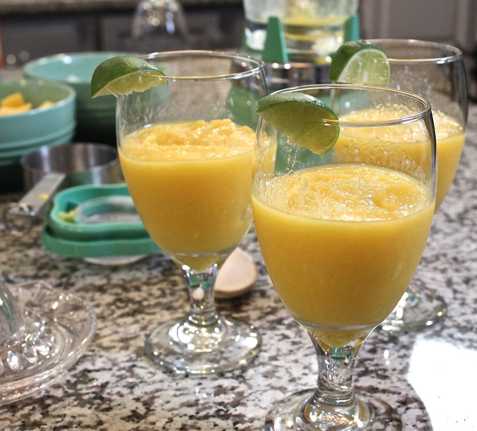Can you spot the umbrella drinks lurking in the background of some of the photos? That would be our Frozen Mango-Peach Cocktails. I neglected to take a photo of them, but here's a photo of another batch from a different night!
